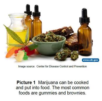 - Edible: food, usually candy or dessert, that have heated up (cooked) marijuana in it (Picture 1)