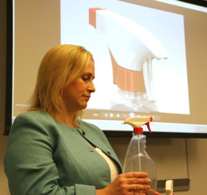 To develop concepts and design a child-resistant spray bottle, Dr. McKenzie’s research group partnered with Professors Carolina Gill, MS, BSID, and Scott Shim, MA, BFA, from the Department of Design at The Ohio State University and Professor Blaine Lilly, PhD, from the Department of Mechanical and Aerospace Engineering at The Ohio State University. Together, they developed a distinct method for making spray bottles essentially unusable by children younger than six years of age.