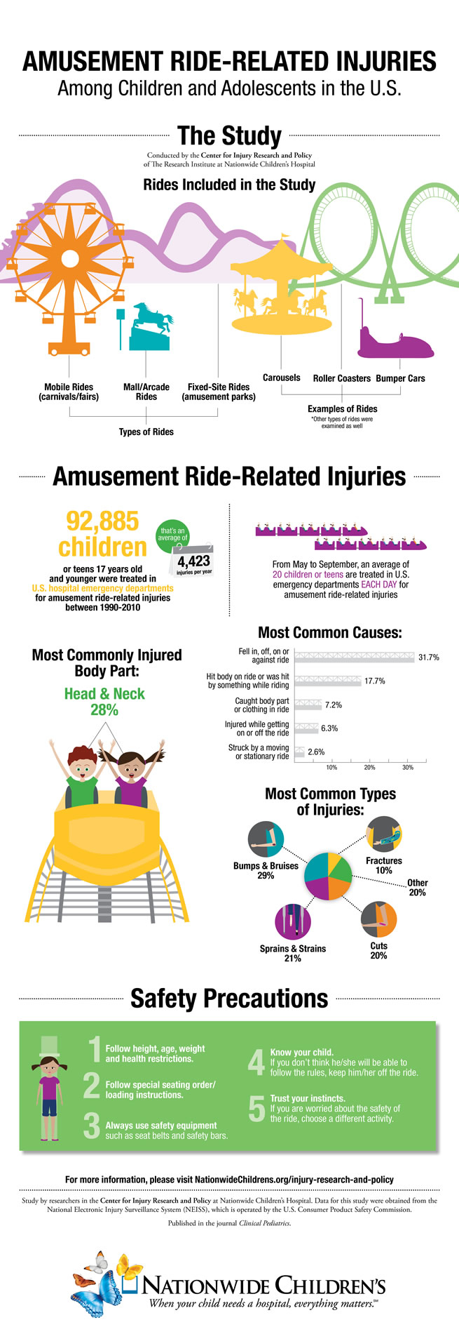 <p><a href="https://www.nationwidechildrens.org/research/areas-of-research/center-for-injury-research-and-policy/injury-topics/sports-recreation/amusement-ride-related-injuries-infographic"><img src="https://www.nationwidechildrens.org//-/media/nch/research/images/amusementridesinfographic.jpg" border="0" alt="Nationwide Children's Hospital Amusement Ride Injuries Infographic" /></a></p><p><a href="https://www.nationwidechildrens.org/research/areas-of-research/center-for-injury-research-and-policy/injury-topics/sports-recreation/amusement-ride-related-injuries-infographic">Amusement Ride Injuries Infographic</a> from <a href="https://www.nationwidechildrens.org/">Nationwide Children's Hospital</a></p>